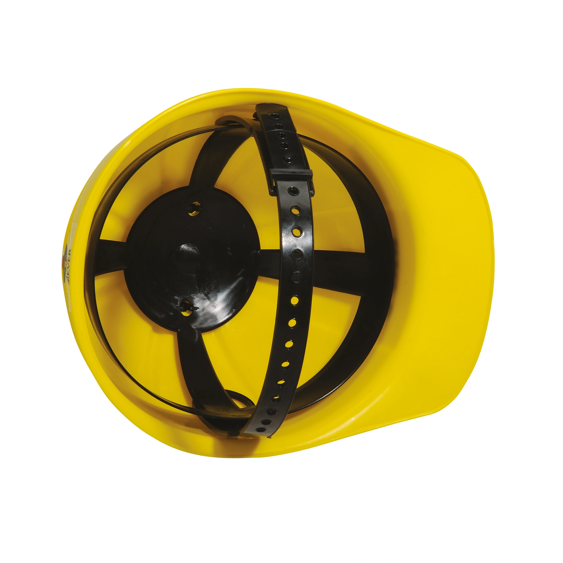 Dank des verstellbaren Gurtes sitzt der Helm sicher auf dem Kopf und rutscht nicht. Der innenliegende Kunststoffeinsatz, ähnlich wie bei echten Bauhelmen, sorgt für zusätzlichen Halt und ein realistisches Tragegefühl.
