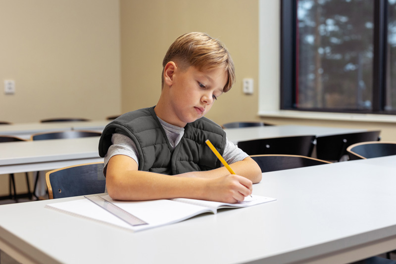 ... Die ergonomische Gewichtsdecke ist speziell für den Nacken- und Schulterbereich entwickelt, um Ruhe und Geborgenheit zu fördern. Sie stimuliert den Tastsinn und sorgt für Entspannung. Das Gewicht auf Schultern und Nacken kann dem Kind helfen, sich besser zu konzentrieren und eine ruhigere Umgebung zum Lernen zu schaffen. Die Decke ist auf jeder Seite in sieben Bereichen abgesteppt zur gleichmäßigen Verteilung der Füllung. Farbe: pflegeleichtes Anthrazit. Handwäsche.