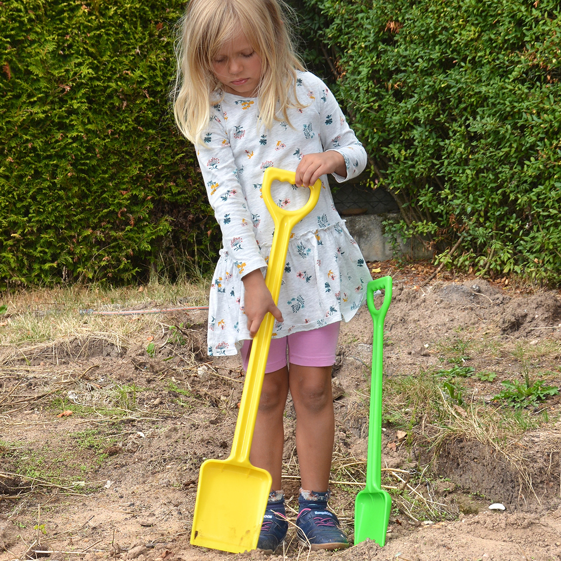 Mit der robusten Schaufel (71 cm) können Kinder buddeln wie die Weltmeister. Die stabile Bauweise und die großzügige Schaufelfläche machen sie zum idealen Werkzeug für große Bauprojekte im Sandkasten oder Garten.