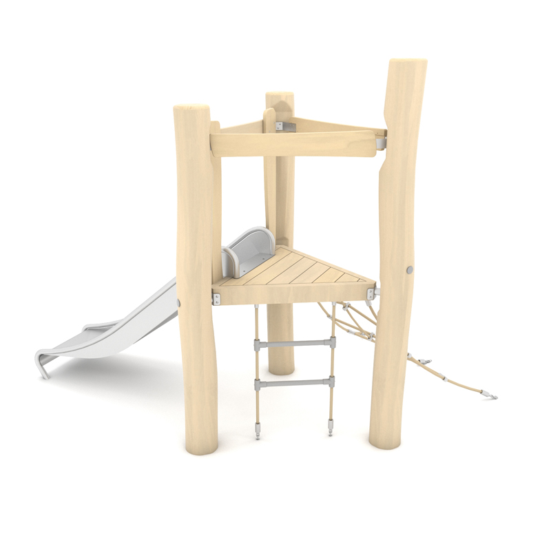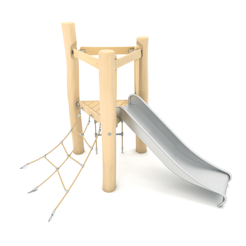 Produkte der Holzserie, angereichert mit Rutschen, Handläufen und Leitern aus Edelstahl sowie Elementen aus HPL-Platten in gedämpften Farben, sind eine hervorragende Erweiterung des Angebots und ermöglichen die Gestaltung eines natürlichen Spielplatzes für Kinder jeden Alters.