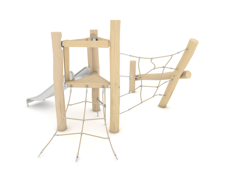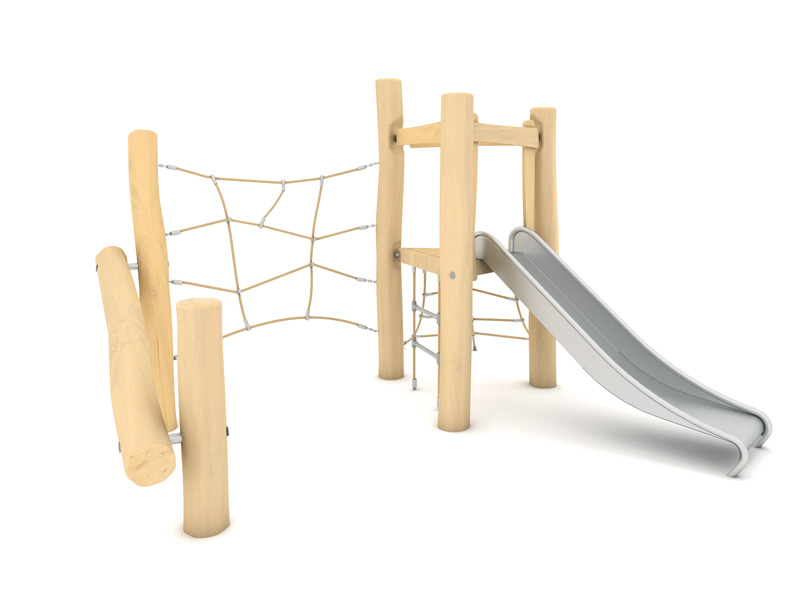 Produkte der Holzserie, angereichert mit Rutschen, Handläufen und Leitern aus Edelstahl sowie Elementen aus HPL-Platten in gedämpften Farben, sind eine hervorragende Erweiterung des Angebots und ermöglichen die Gestaltung eines natürlichen Spielplatzes für Kinder jeden Alters.
