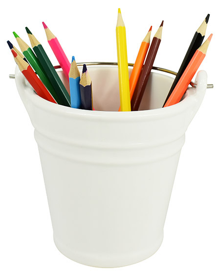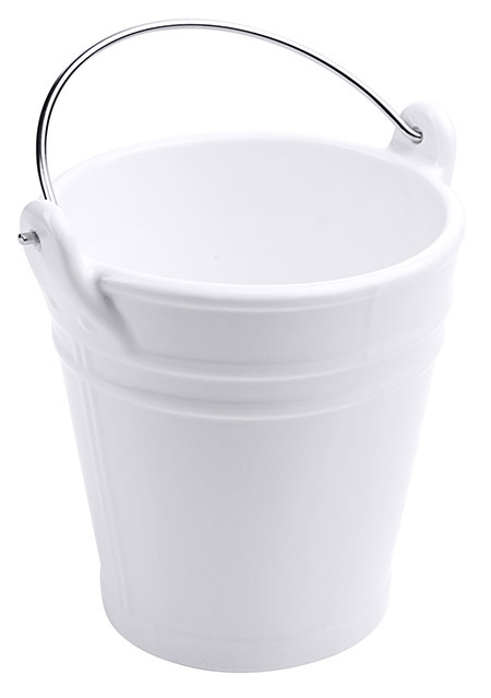 Mini-Eimer aus weißem Porzellan, mit Bügel aus Edelstahl-Draht, spülmaschinengeeignet und lebensmittelgeeignet
