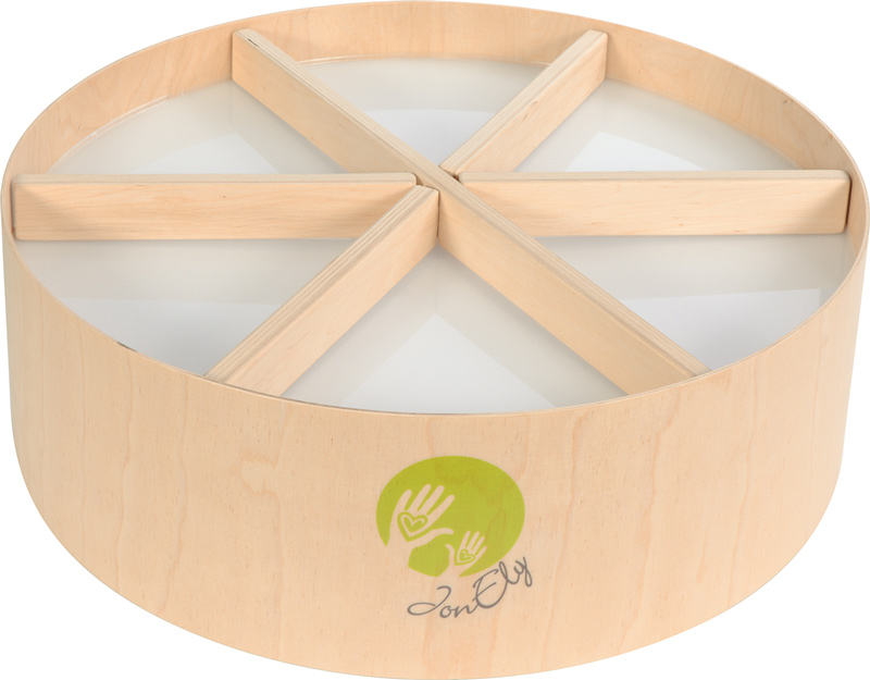 ... Drei Holzelemente lassen sich zu einem Trennkreuz mit 6 Unterteilungen für den Leuchtkübel zusammenstecken. Toll zum gemeinsamen Spielen und zur Entwicklung sensorischer Fähigkeiten.