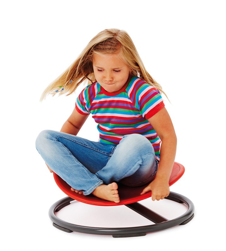 Spannendes Karussel mit dem Kinder sich richtig drehen können! Der Sitz ist leicht angewinkelt, so dass Kinder das Karussell durch Gewichtsverlagerung in Bewegung bringen können. Kleine Kinder bewegen den Sitz indem sie sich mit den Füßen abstoßen. Der dicke Sitzrand bietet einen guten Halt zum Festhalten, wenn das Karussell sich dreht. Das Spiel mit dem Karussell entwickelt Muskelspannung und Muskelkräftigung. Der Gleichgewichtssinn in Verbindung mit der Sehachse beim Drehen unterstützt die Balancefähigkeit. Der stabile, ausgeformte Kunststoff-Sitz, sitzt auf einer Stahlscheibe, die mit einer Rotationsachse mit zwei Kugellagern verbunden ist. Das standsichere Metallgestell mit Gummifüßen garantiert sicheres Drehen und Kreisen mit dem Karussell.