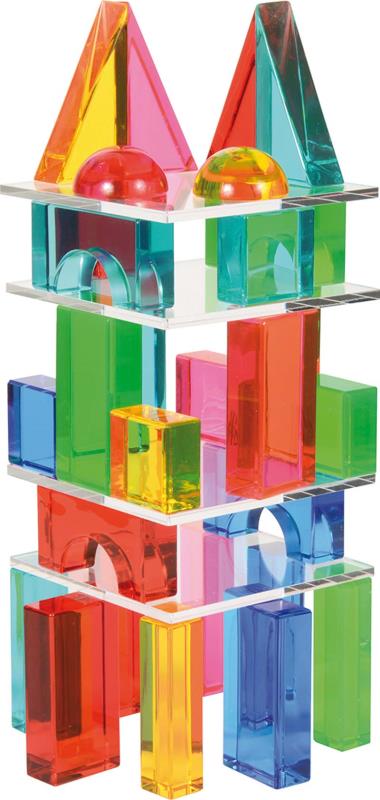 ... Die handschmeichelnden Geo Bausteine faszinieren beim Spielen und Bauen durch ihre glänzende Oberfläche und durchscheinende Reflexionen mit tollen Farbeffekten. Mit sechs verschiedenen Formen und vier quadratischen Platten können Kinder transluzente Bauwerke mit mehreren Ebenen gestalten.