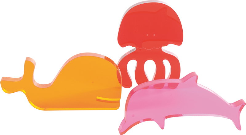 ... und formschönen Figuren von Unterwassertieren (Fisch, Krabbe, Delfin, Muschel, Wal und Seepferdchen) bringen einen neuen Ansatz in das Spiel der Kinder mit Licht und Phantasie. Ob drinnen, draußen oder unter Wasser - das Spielen mit diesen Figuren garantiert eine spannende Zeit. Um den vollen Wow-Effekt zu erleben, versuche, die Figuren auf einer Leuchttafel zu verwenden, auf der die Farben am hellsten leuchten und die kleinen Entdecker in ihren Bann ziehen. Die Figuren können auch als Lernmittel verwendet werden, um Kindern etwas über das Leben im Meer beizubringen.