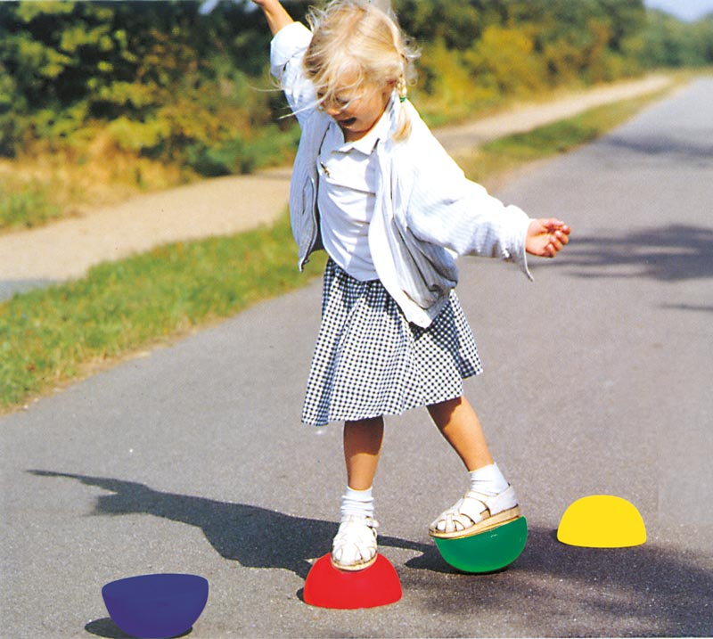 Das Balancieren auf den Balance Hartys erfordert hohe Konzentration. Die Fußmuskulatur wird gekräftigt, sowie der gesamte motorische Bewegungsablauf gefördert.