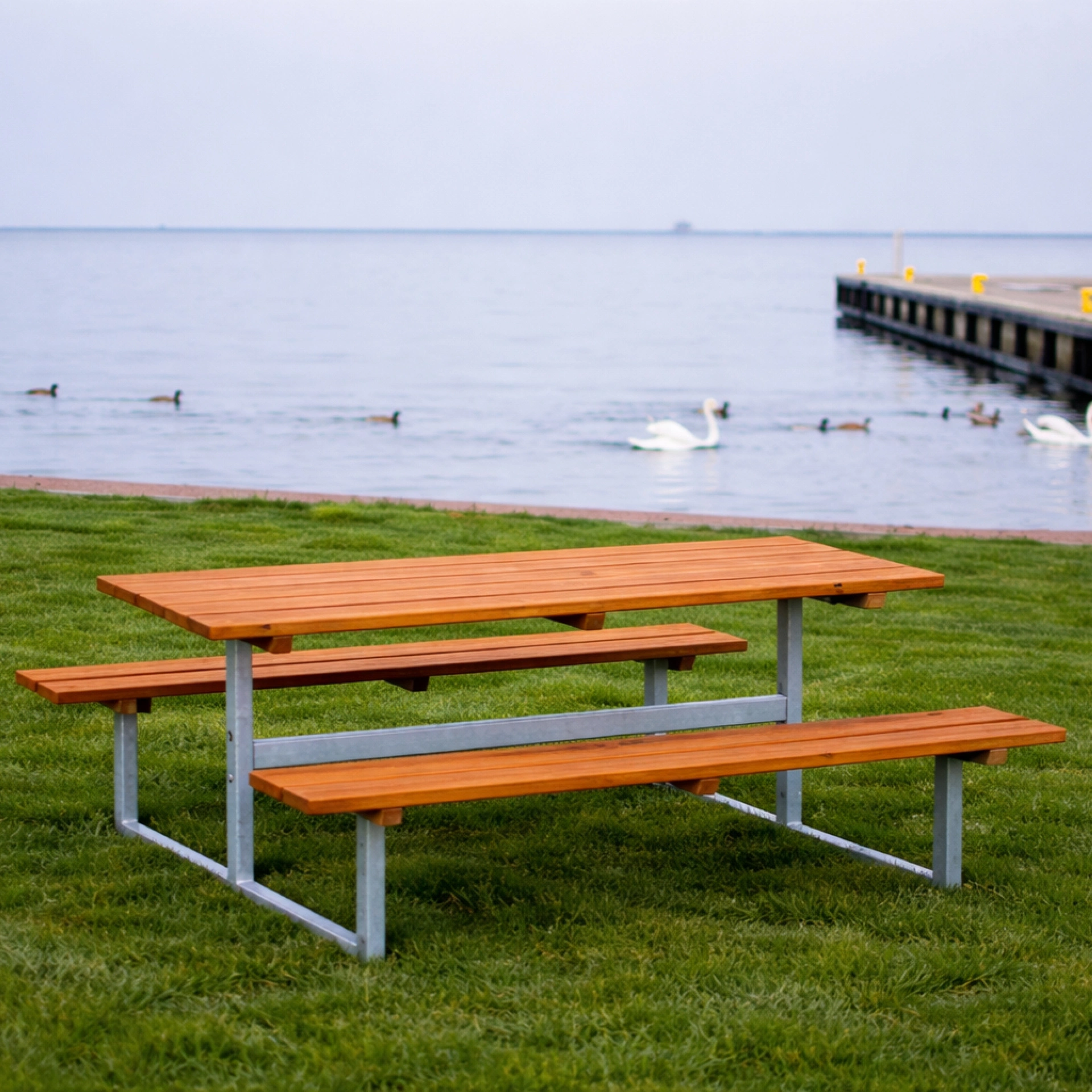Der Bank & Tisch (Lärcheholz, verzinkt Stahl) ist nicht nur funktional, sondern auch ausgesprochen komfortabel. Perfekt geeignet für den Einsatz in öffentlichen Parks, Freizeitbereichen oder an Sporteinrichtungen, fügt er sich nahtlos in jede Umgebung ein, ohne dabei aufdringlich zu wirken. Diese Stadtmöbelkombination lädt zu geselligen Runden ein und bietet den Nutzern eine bequeme Sitz- und Ablagefläche.