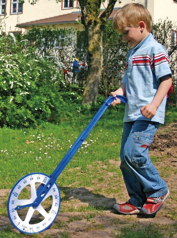 ... Mit diesem Messrad können Entfernungen gemessen werden ? ideal, um gleich große Spielfelder anzulegen... Das Zählwerk klickt nach jedem Meter. Eine Radumdrehung entspricht 100 cm. Die Entfernung ist am Zählwerk ablesbar. Handgriff höhenverstellbar von 73 bis 93 cm mit 3 Einraststufen. Kinderleichte Montage.