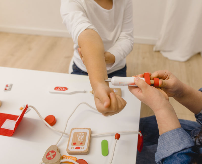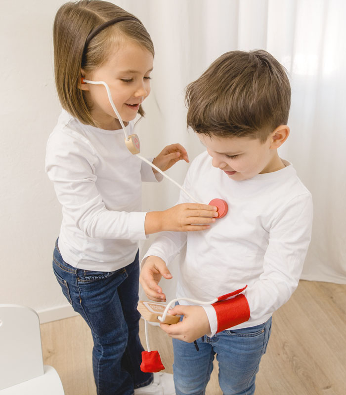 Das Besondere an dieser Rollenspieltasche ist das hochwertige Zubehör aus FSC®-zertifiziertem Holz, das nicht nur nachhaltig produziert wurde, sondern auch besonders langlebig und sicher für Kinder ist. Von Stethoskop über Blutdruckmessgerät bis hin zur Spritze und den Röntgenaufnahmen – jedes Teil wurde detailreich gestaltet und sorgt für ein authentisches Spielerlebnis. Die praktische Baumwolltasche macht es möglich, das Set überallhin mitzunehmen, sodass der Spielspaß jederzeit und überall beginnen kann.