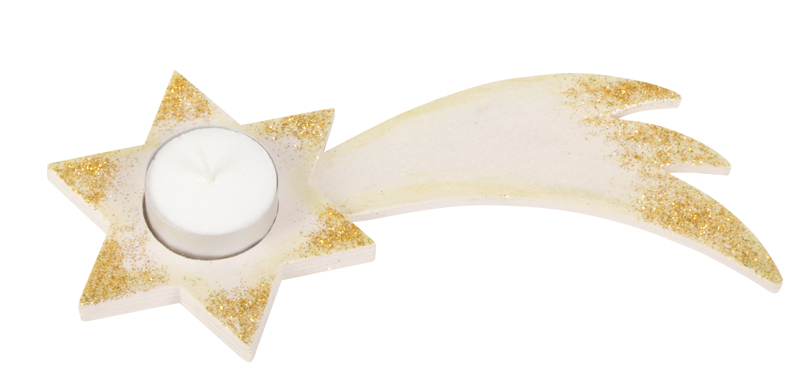 Teelichthalter Sternschnuppe aus Holz zum Bemalen