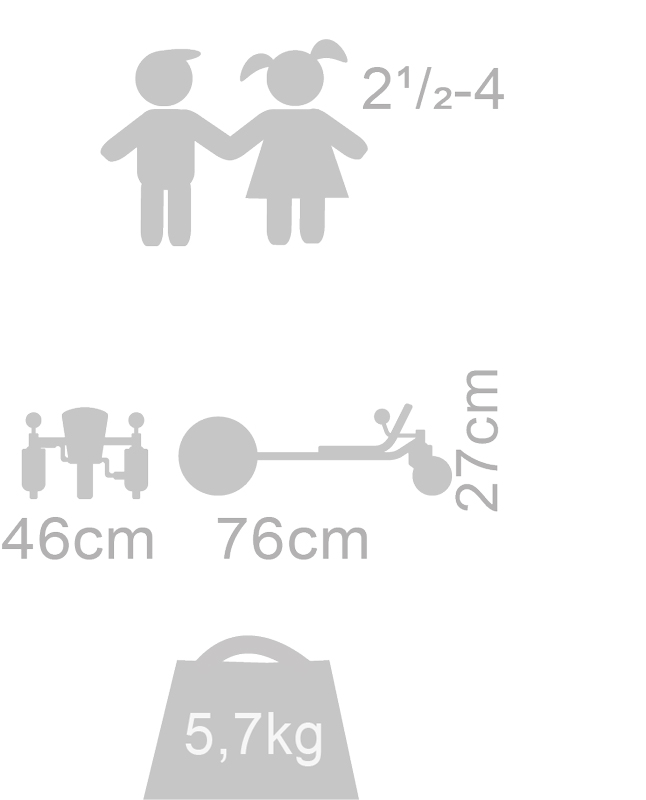 Ein toller Artikel für die Kleinen, die Geschwindigkeit und Nervenkitzel suchen. Mit dem einzigartigen Lenksystem, das mit einer Hand bedient werden kann, können Kurven leicht genommen werden. Mit dem MINI FunRacer werden die Koordinationsfähigkeiten gefördert und die Kinder lernen zu manövrieren, d. h. vorwärts und rückwärts und in Kurven zu fahren. Für die Altersgruppe 2½-4 Jahre.