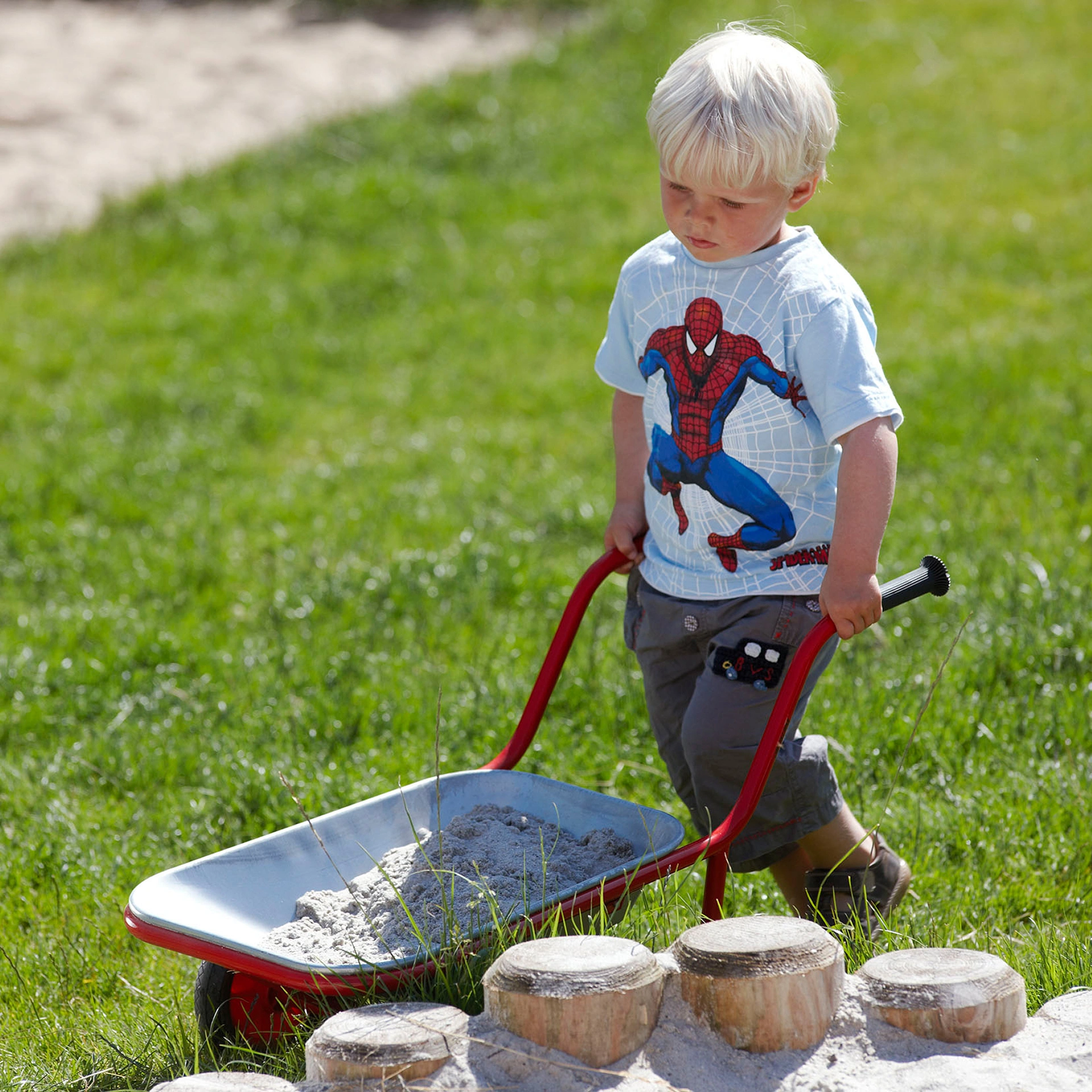 Ob Sand, Spielzeug oder Naturmaterialien – mit dieser Schubkarre gelingt der Transport spielend leicht. Gleichzeitig erleben Kinder erste Alltagssituationen und lernen, Verantwortung zu übernehmen.