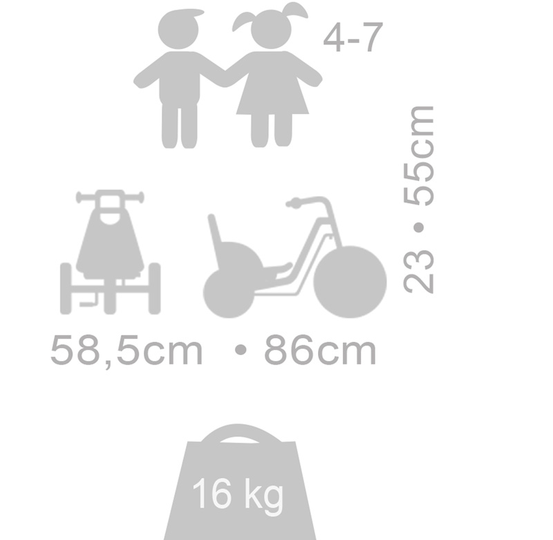 Slalom fahren macht das Fahren aufregend und herausfordend! Die einzigartige, patentierte Lenkung ermöglicht das Wenden auf sehr kleinem Raum. Auch scharfe Kurven können ohne Umkippen gefahren werden. Mit den breiten und profilierten Reifen wird es für Kinder, die Wettkämpfe und Herausforderungen mögen, schnell zum Lieblingsfahrzeug.