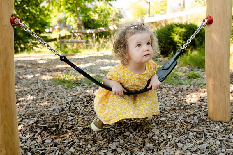 ... Nur Fliegen ist schöner! Auf dem Bauch liegend schweben Kinder ganz nah über dem Boden. So können sie sich mit ihren Händen oder den Füßen selbst abstoßen und erste Schaukelerfahrungen machen. Durch die geringe Fallhöhe ist das für die ganz Kleinen ein unbeschwertes und sicheres Vergnügen. Natürlich kann man im Gurt auch sitzen oder liegen. Lieferumfang: 2 Standpfosten aus Robinienholz, je ca. Ø 14-16 x 200 cm lang, 1 Gurtschaukelsitz, 2 Ketten aus Edelstahl Ø 6 mm, 2 Gelenkschaukelhaken, Schäkel, Halbmondbuchsen, Stahllaschen und vormontierten Sicherheitslagern.