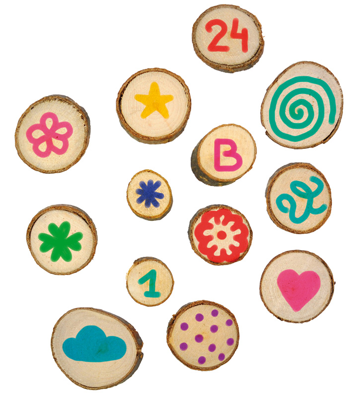... was man aus diesen Naturholzscheiben basteln kann: Sie können die Räder für ein Fahrzeug sein, man kann Löcher in die Scheiben bohren und sie als Kette aufhängen oder als Knöpfe zum Spielen, sie können mit Motiven bemalt werden. Als Topfuntersetzer oder zum Bekleben von Blumentöpfen... Man kann Männchen daraus bauen und sie mit zahlreichen anderen Formen und Materialien kombinieren. Inhalt: 1 kg.