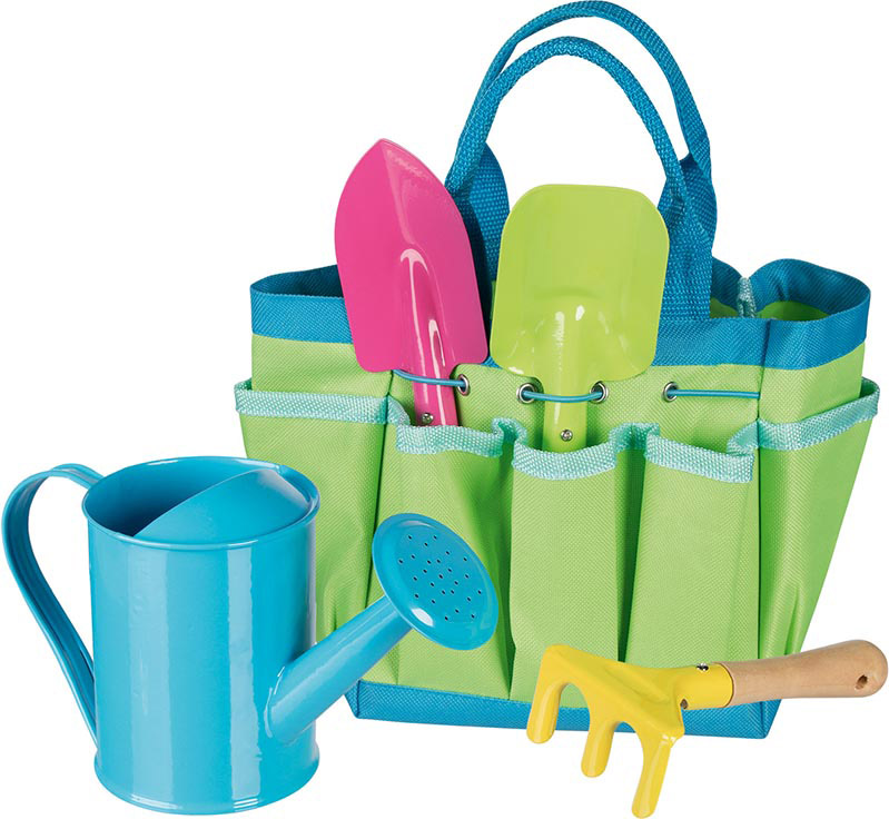 In der Tasche befindet sich alles, was die Kinder für die Arbeit in ihrem eigenen Garten brauchen.