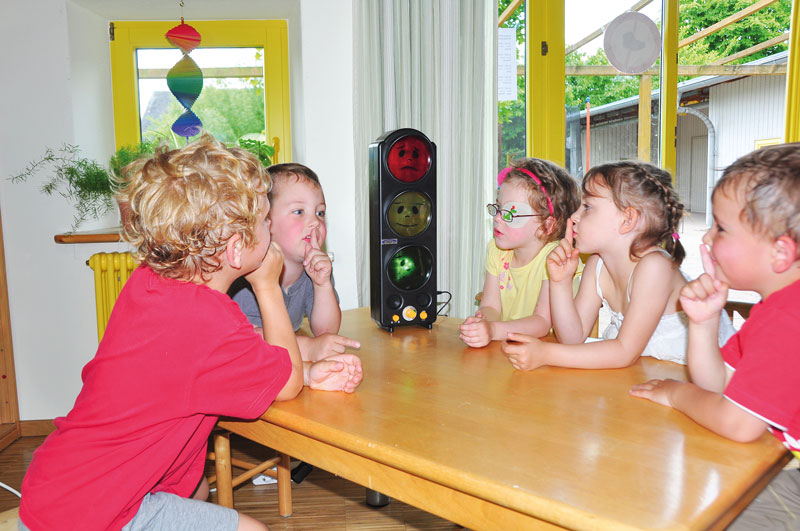 ... Diese Lärmampel sorgt für konzentriertes Lernen in der Gruppe. Wie bei einer 3-Stufen-Verkehrsampel steuert sie den Geräusch-Verkehr im Raum. Bekannte Ampelfarben zeigen den Geräuschpegel an. Ist er zu hoch, schaltet die Ampel auf rot. Die Empfindlichkeit des Microfons (wann ist die Lautstärke zu hoch?) kann durch 4 Stufen eingestellt werden. Die einzelnen Ampelleuchten manuell anzusteuern ist ebenfalls möglich. Bei rot unterstützt bei Bedarf sogar ein Signalton, dessen Lautstärke stufenlos reguliert wird. Als Tischaufsteller oder an die Wand gehängt, bleibt die Lärmampel für jedes Kind im Blick. Die LED-Leuchten haben eine durchschnittliche Lebensdauer von 100.000 Betriebsstunden. Netzbetrieb mit Netzkabel zum einfachen Anschließen an der Steckdose. Oder alternativ auch portabel per Akku-Pack betreibbar (separat erhältlich: 110-369 Akku-Pack für Lärmampel). Dieses Akku-Pack ist wiederaufladbar in der Lärmampel, sobald sie mit dem Netzstecker an der Steckdose angeschlossen ist.